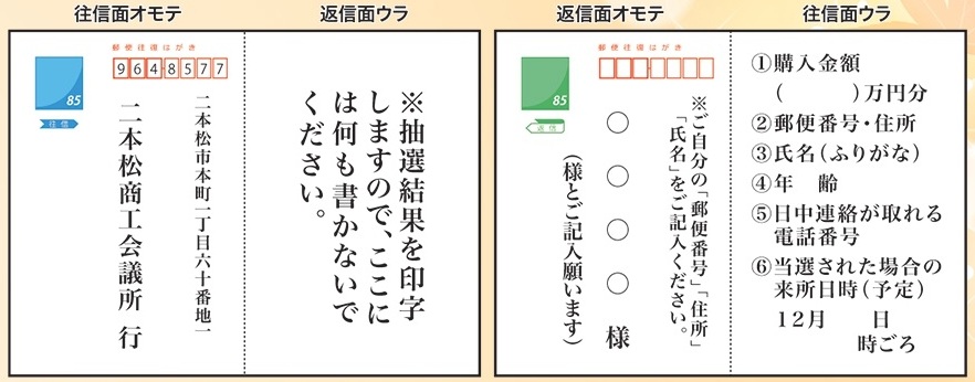 - 抽選結果は12月上旬に返信はがきにてお知らせします。